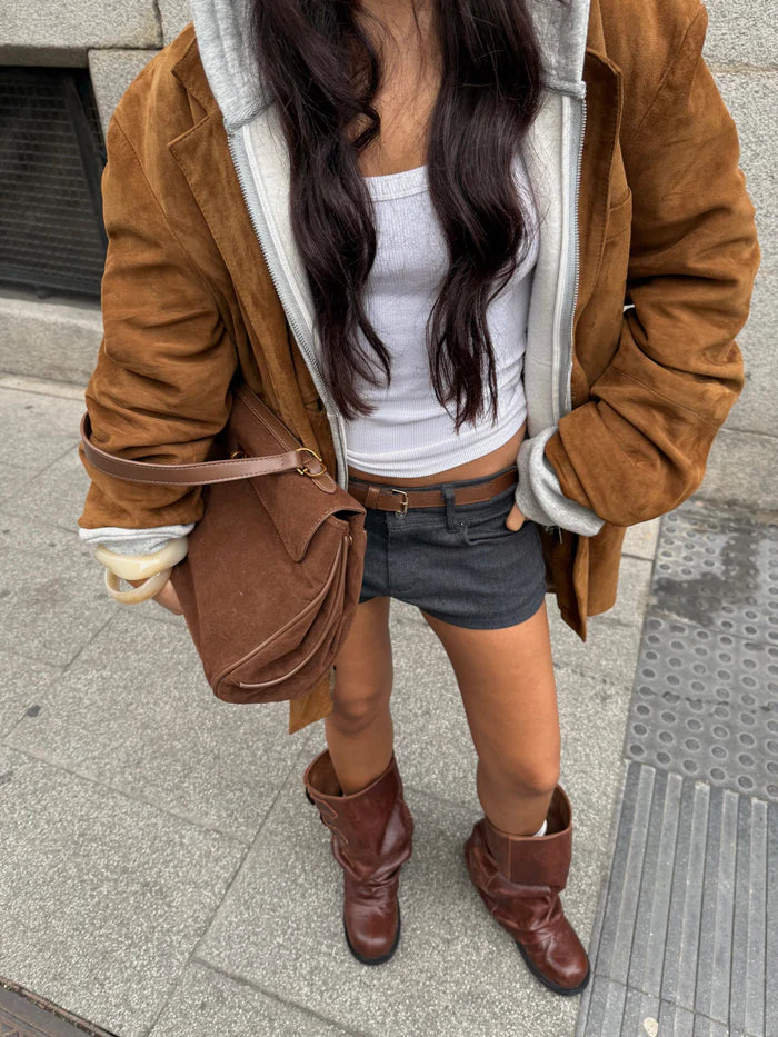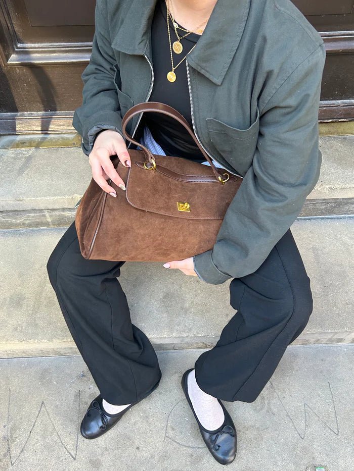 Diese Tasche besteht aus Rinds-Spaltleder, das in einem speziellen Veredelungsprozess mit einer feinen Schutzschicht überzogen wird.
