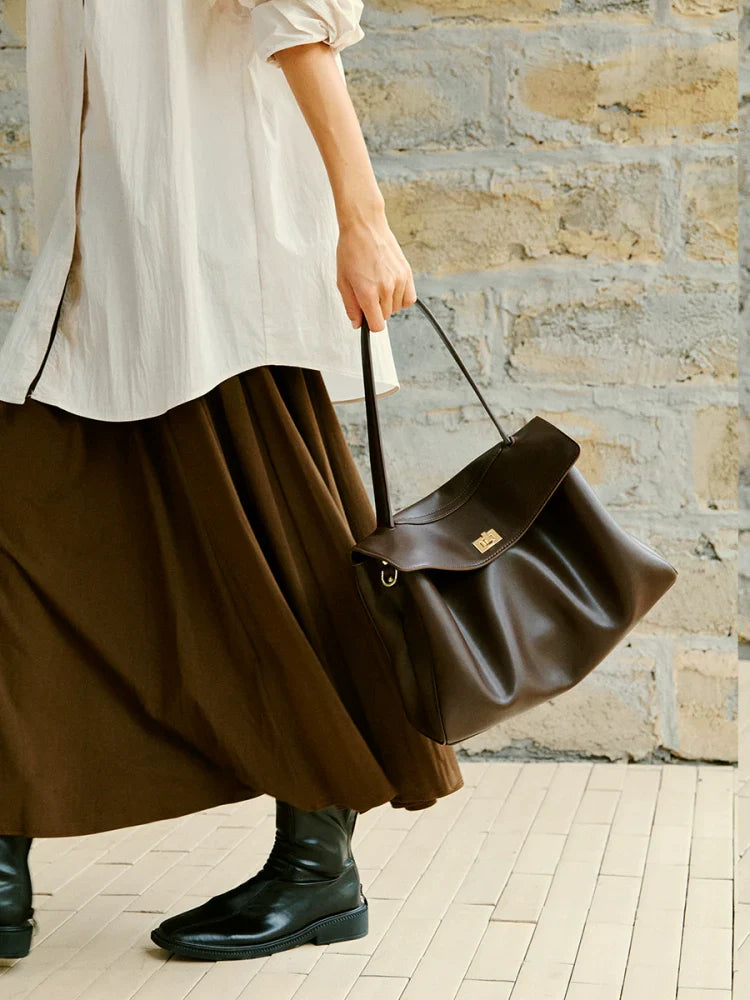 Unser hochqualitatives Leder braucht keine komplizierte Pflege. Wische eeinfach mit einem weichen, leicht feuchten Tuch und etwas milder Seife ab, dann trockenreiben. Meide direkte Sonne und Hitze – so bleibt deine Tasche lange schön.